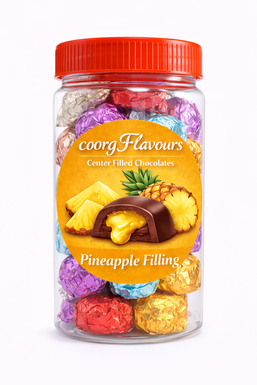 Creamy chocolate filled with a tropical pineapple center, balancing sweetness with a light tangy note