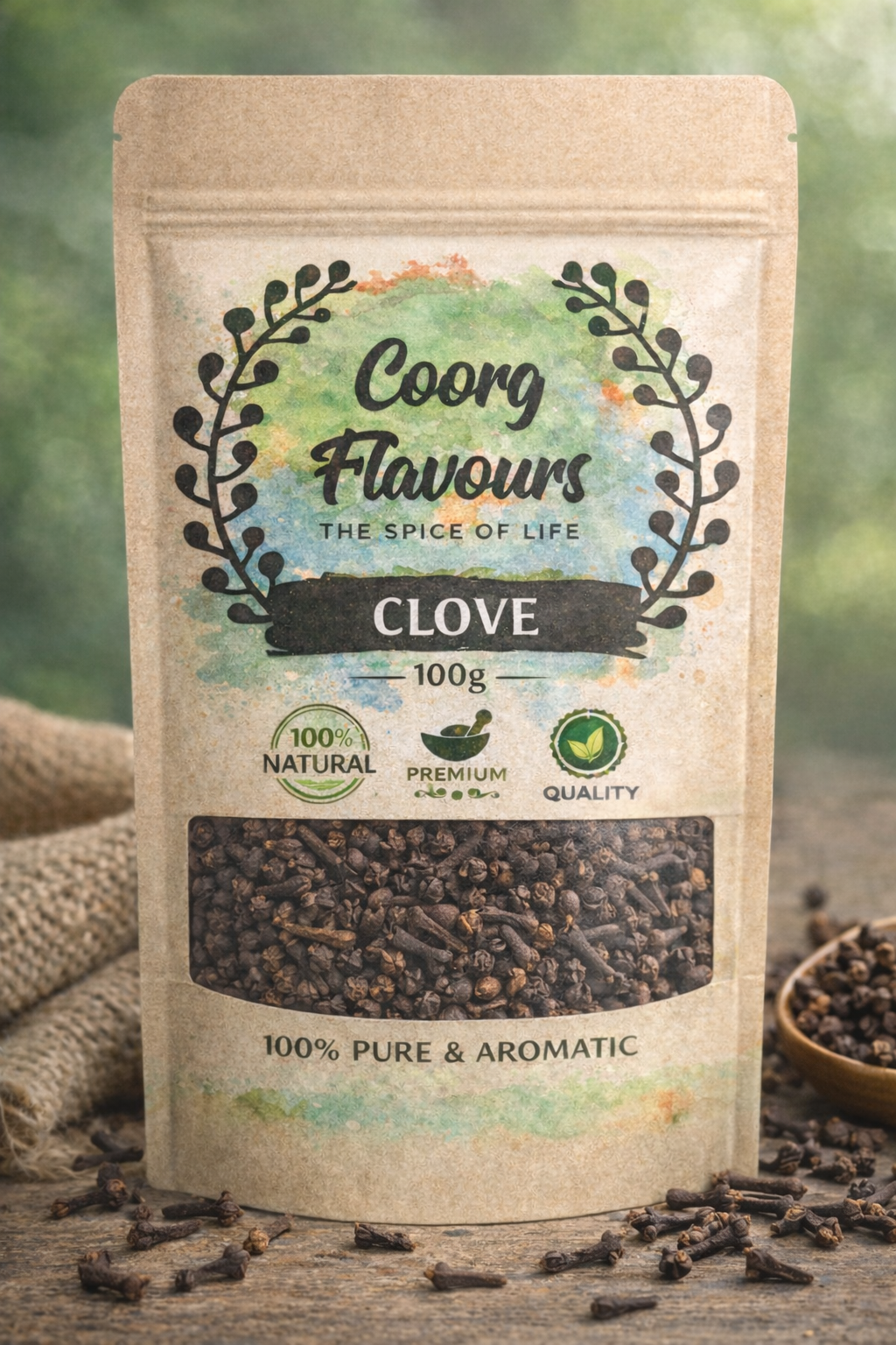 Clove (Coorg): Intensely fragrant Coorg cloves with a warm, sweet-spicy aroma and oil-rich bud